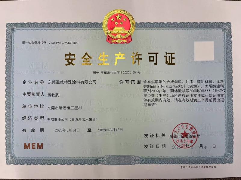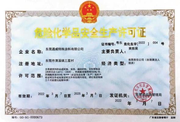 資質與證書 (危險化學品安全生產許可證/排污許可證/危險化學品經營許可證)