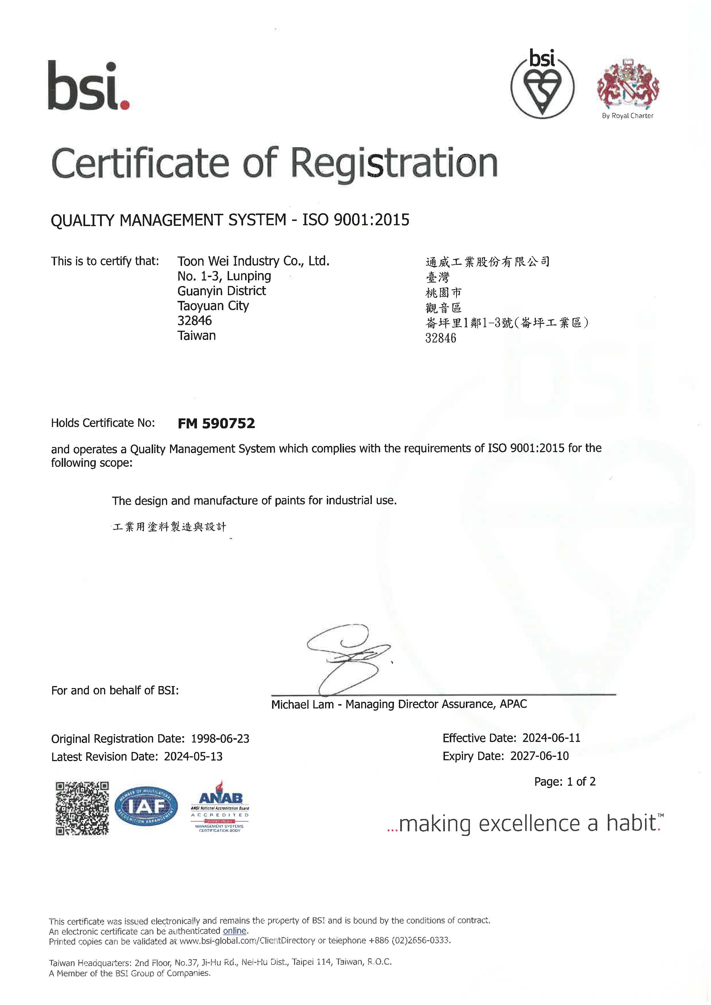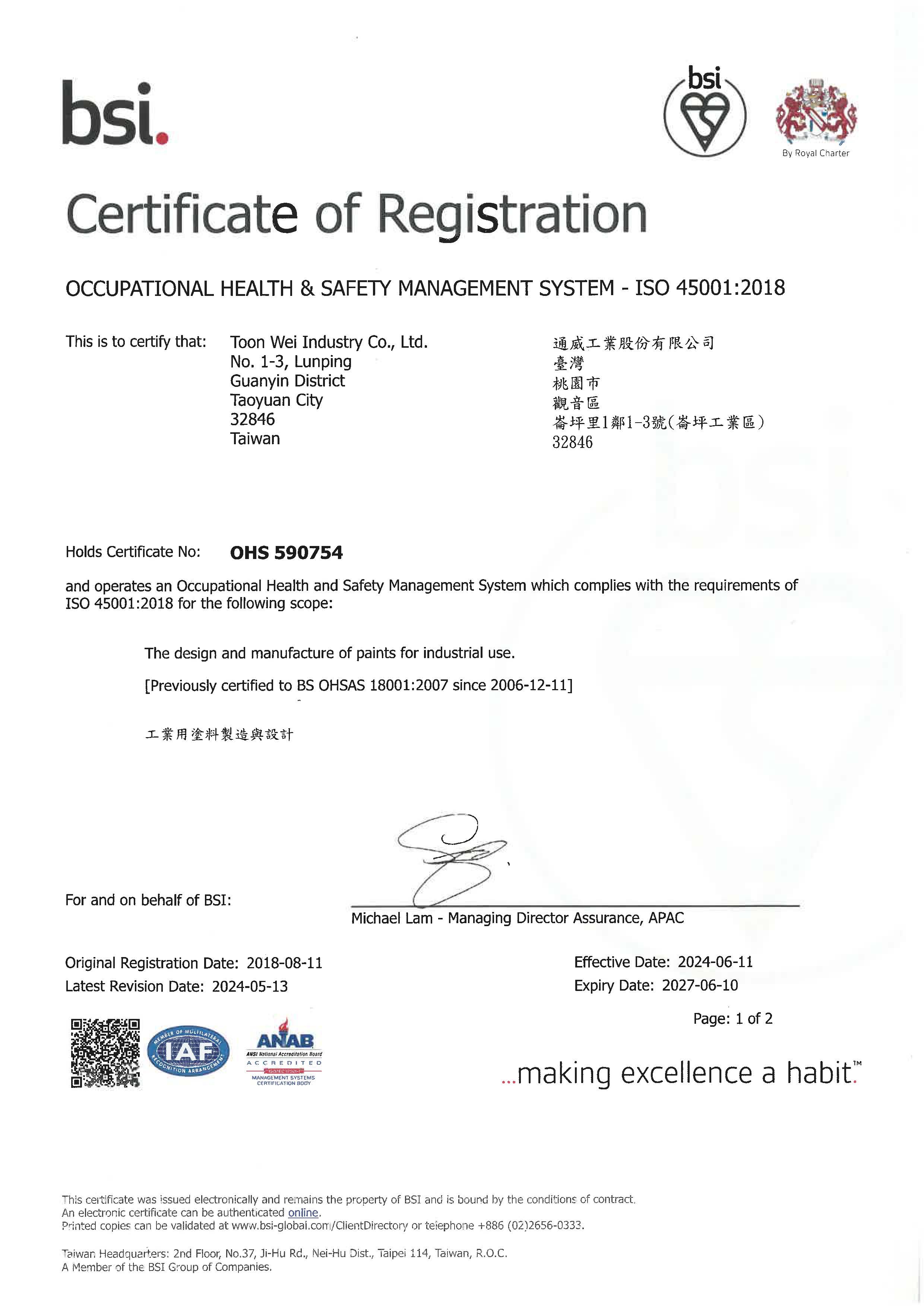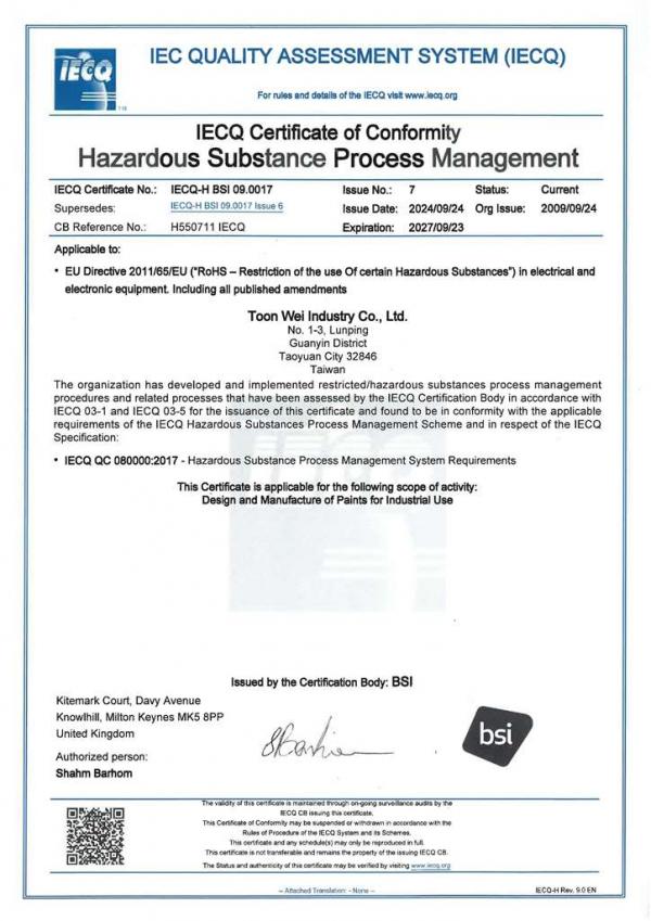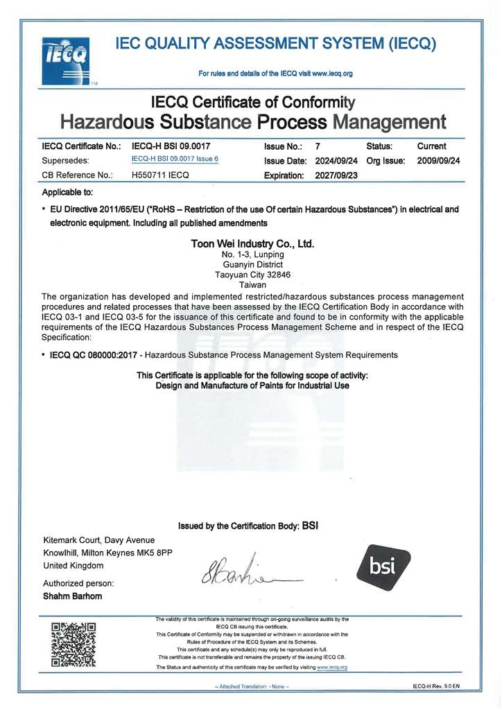 證書 (BSI ISO9001、ISO14001、ISO45001及QC080000認證合格)