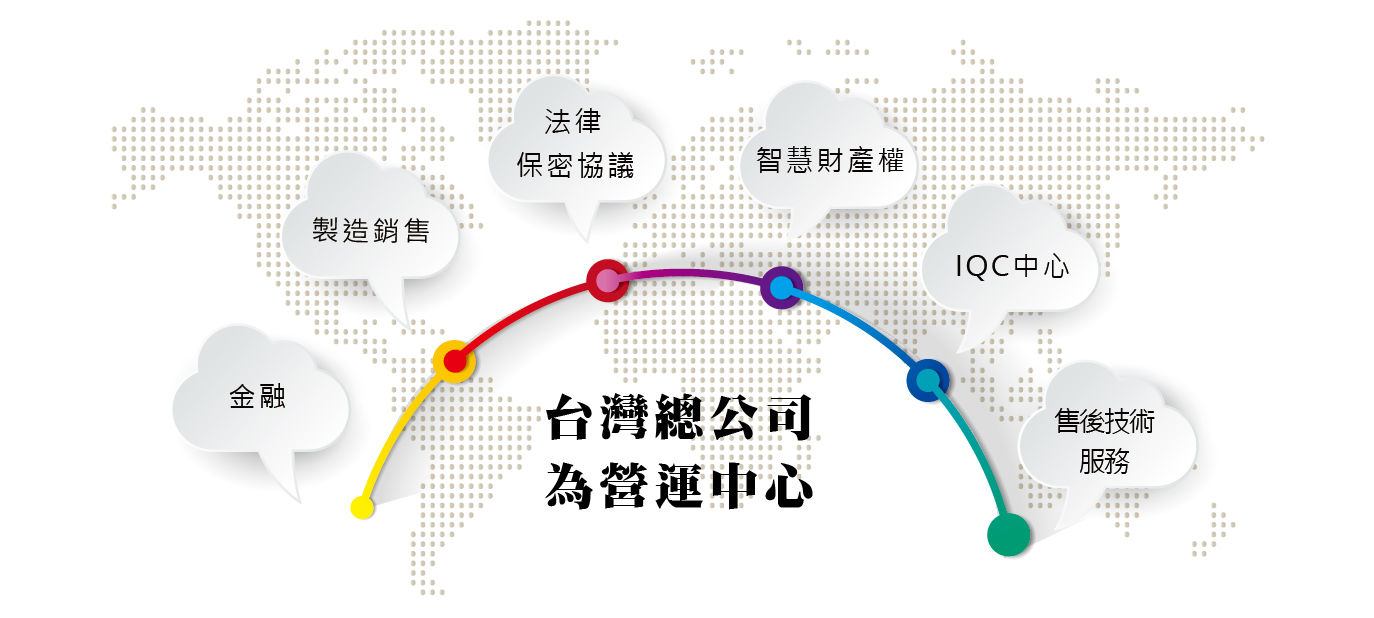 通威以台灣總公司為簽約、金融、IQC、法律、保密協議、智慧財產權等為營運中心,並在台灣及大陸華南、華東地區做為製造銷售推廣據點。